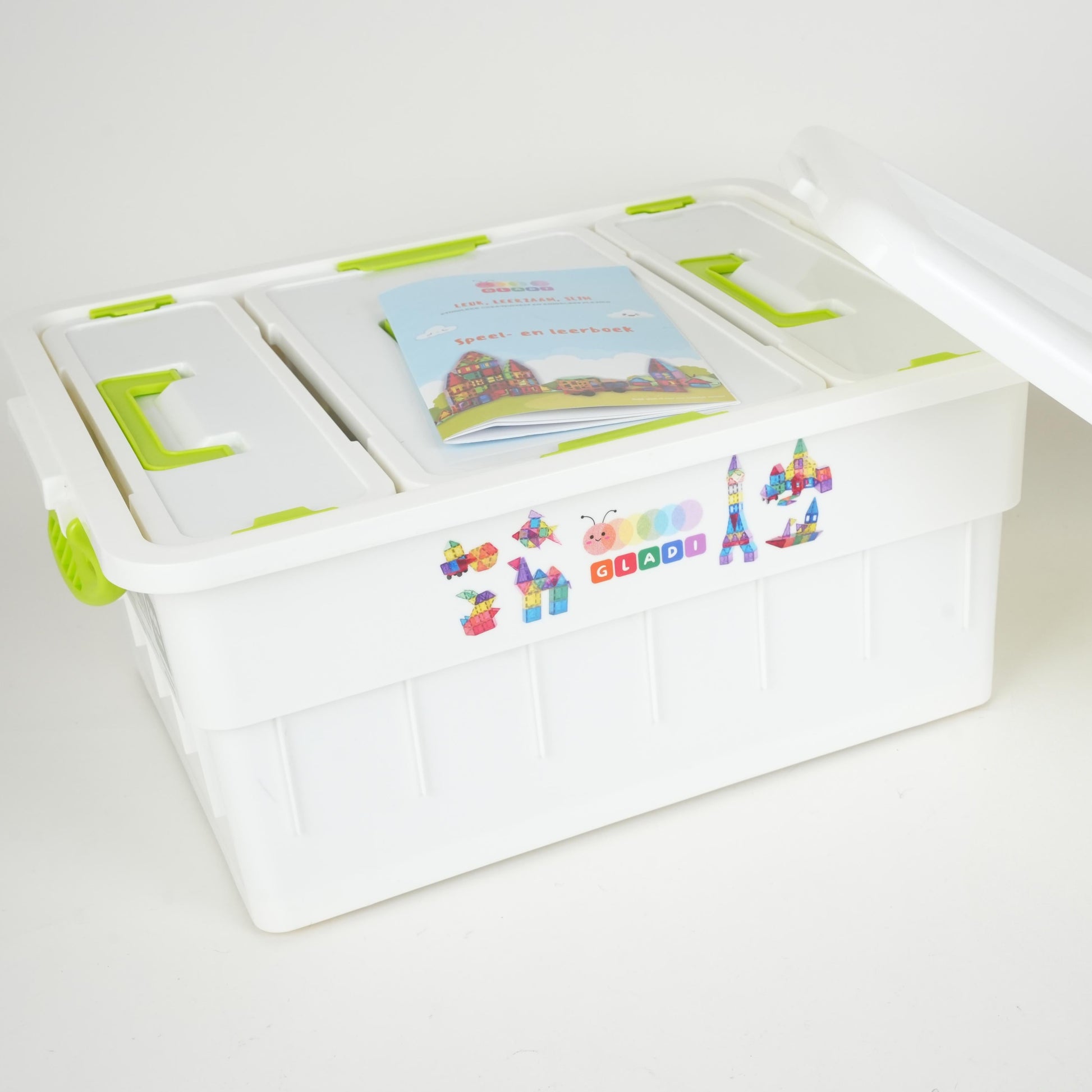 Gemaakt van stevig ABS-plastic, met sterke magneten en afgeronde hoeken. Gladi Tiles zijn getest, CE-gekeurd en 100% veilig voor kinderen vanaf 3 jaar.